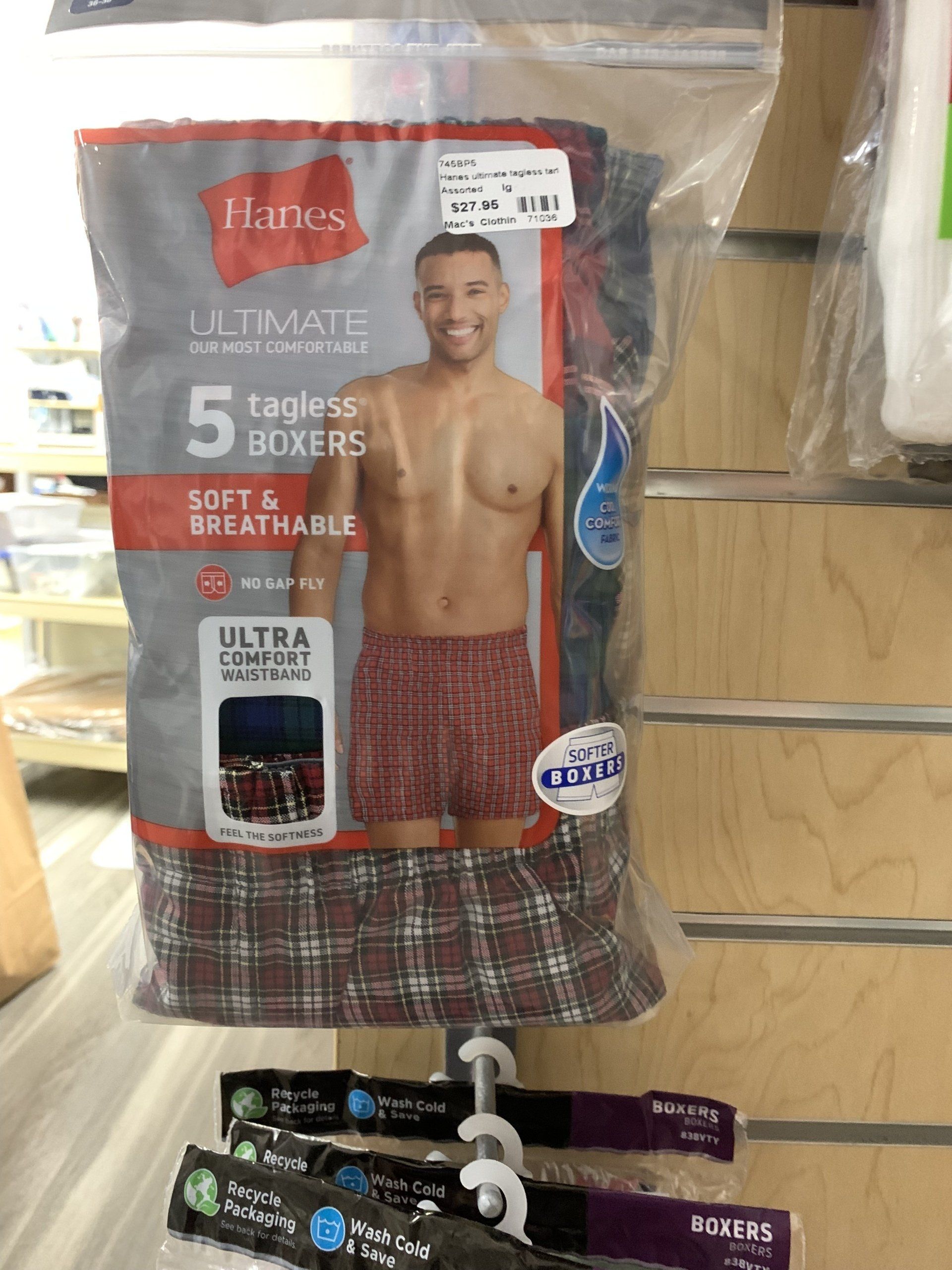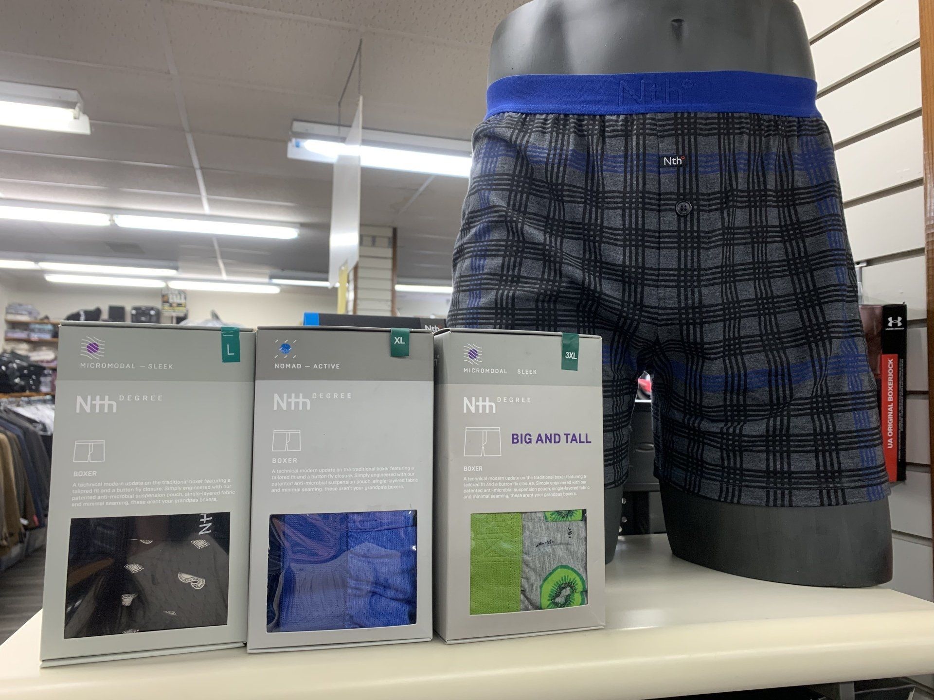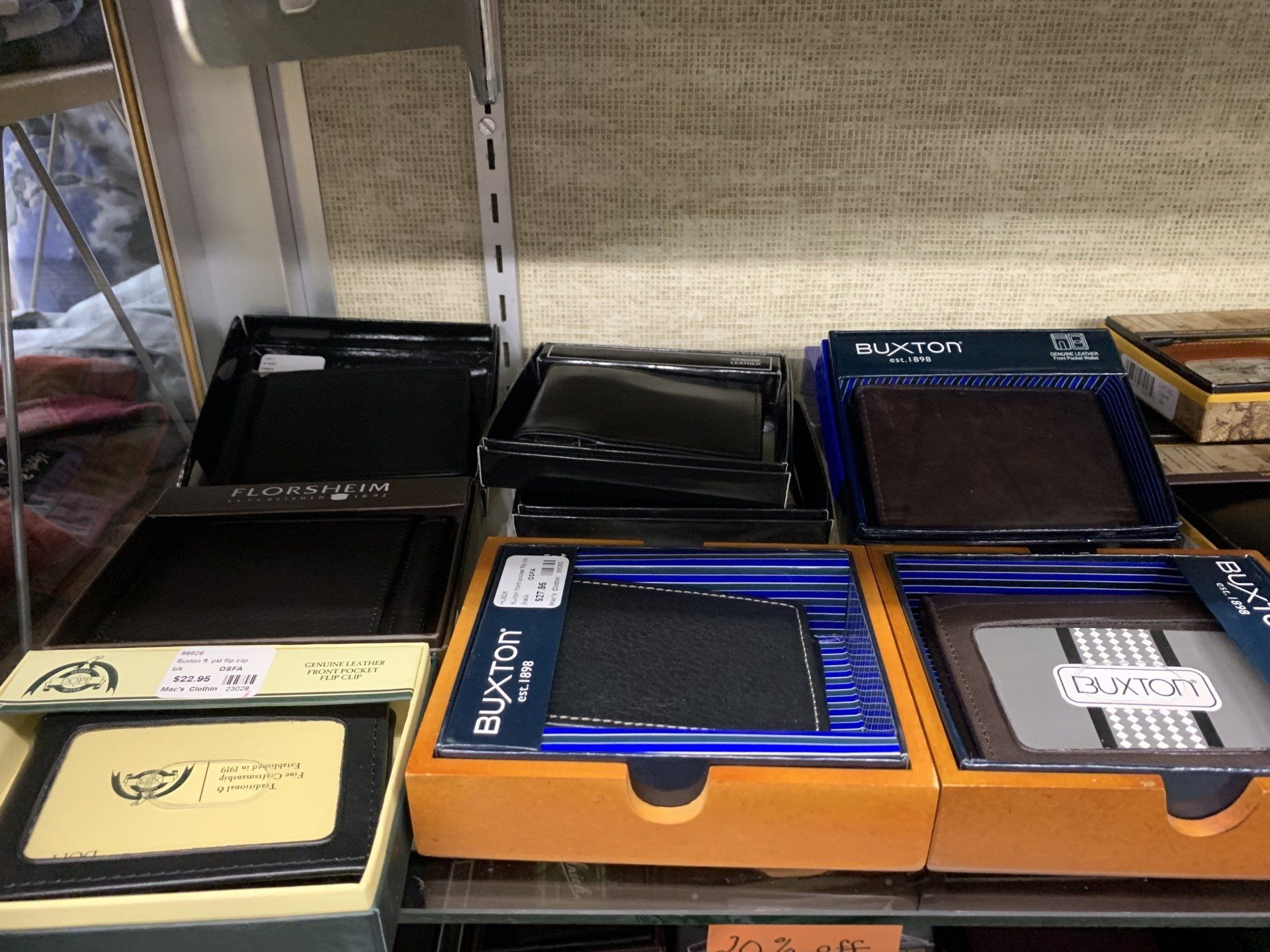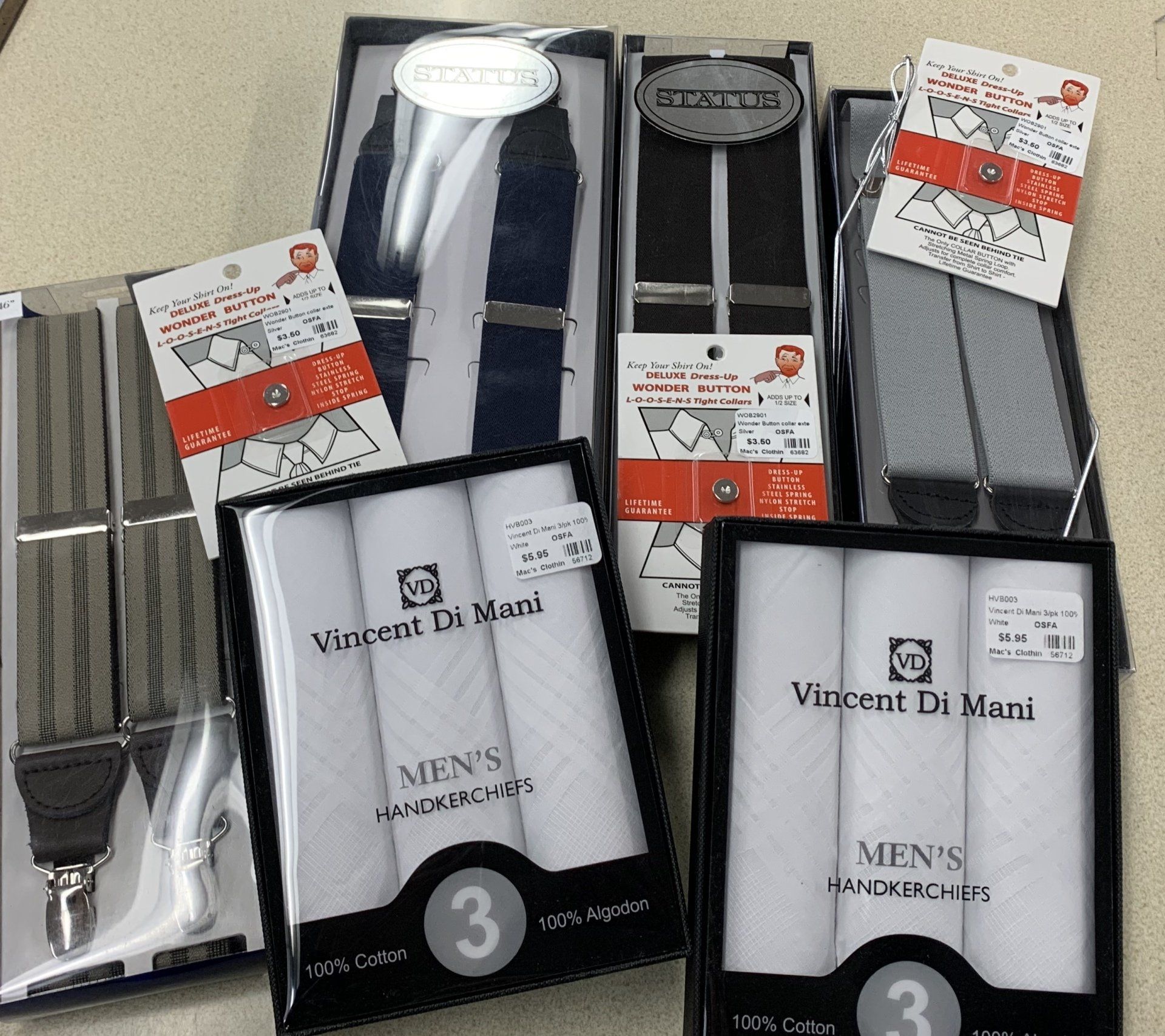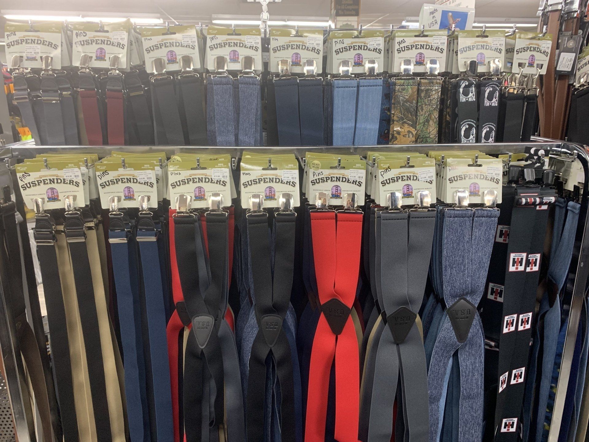 Wallets, belts, suspenders, cuff links, tie bars, bandannas, socks, bedroom slippers, and underwear all at Mac's Clothing! Stop in to find your finishing touches.
