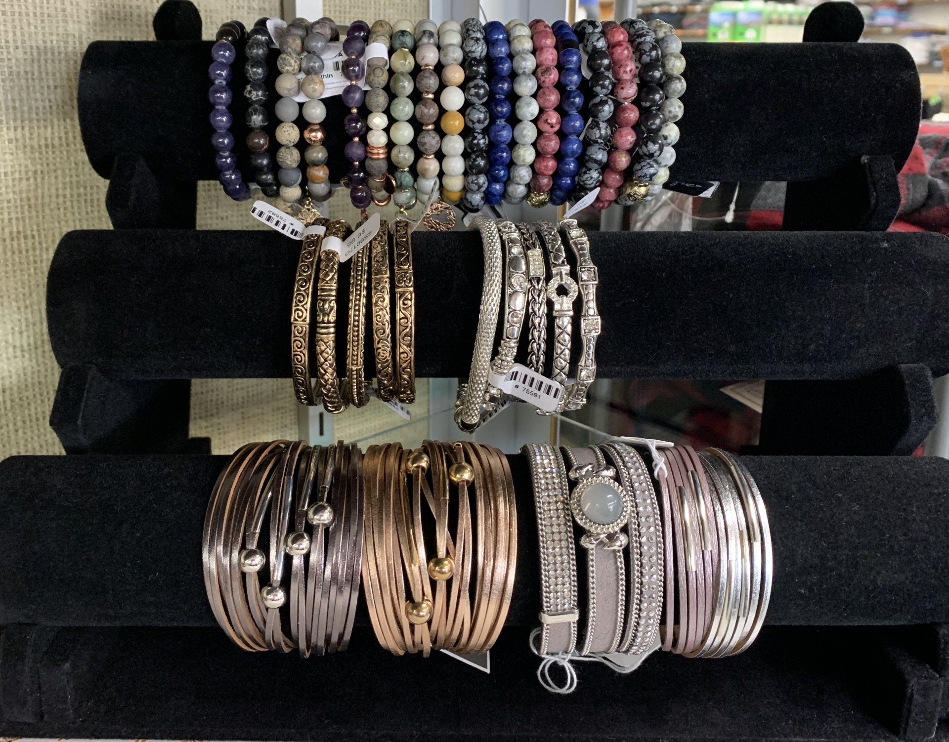 Purses, Wallets, Earrings, Necklaces, Ring, Bracelets, Belts, Shoes, Reading Glasses, and much more! Stop at Mac's Clothing to find the perfect accessory!